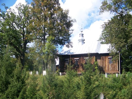 Cerkiew św. Paraskewy w Górzance (obecnie rzymskokatolicki kościół parafialny pw. Wniebowstąpienia Pana Jezusa) – drewniana greckokatolicka cerkiew, wzniesiona we wsi Górzanka. HistoriaBudowę obecnej cerkwi w Górzance rozpoczęto w roku 1835 w miejsce wcześniejszej cerkwi z roku 1718. Wcześniej we wsi istniała jeszcze starsza cerkiew, o której wzmianki pochodzą już z roku 1599, a która spłonęła przed rokiem 1718. Fundatorem obecnej cerkwi był Feliks Giebułtowski, ówczesny właściciel wsi. Jej poświęcenia dokonano 10 września 1838 roku. W roku 1912 przeszła remont. W roku 1948 przejęta przez kościół rzymskokatolicki i użytkowana jako kościół filialny, a od roku1969 parafialny pw. Wniebowstąpienia Pańskiego w dekanacie Solina. BudowaCerkiew w Górzance jest świątynią orientowaną, dwudzielną o konstrukcji zrębowej. Ściany oszalowane i wzmocnione lisicami. Do wybudowanego na planie kwadratu prezbiterium od północy przylega zakrystia. Nawa szersza. Od zachodu przedsionek o konstrukcji szkieletowej. Nad prezbiterium i nawą dachy kalenicowe, nad przedsionkiem dwuspadowy. Nad nawą wieżyczka z cebulatym hełmem, nad przedsionkiem wieżyczka czworoboczna z dachem namiotowym. WnętrzeW cerkwi w Górzance znajduje się unikatowy w skali kraju ikonostas(zrekonstruowany w latach (2005-2010), składający się z wyciętych z deski, płaskorzeźbionych i polichromowanych postaci. Wedle miejscowej tradycji wyrzeźbiony został przez miejscowego artystę z jednego pnia lipy. Powstał prawdopodobnie w I połowie XVIII wiek, ponieważ wymienia go już spis inwentarza z roku 1752. Został rozmontowany wedle różnych źródeł w roku 1912, gdyż został uznany przez miejscowego biskupa za niekanoniczny, lub 1951. Jego części zostały porozwieszane w różnych miejscach świątyni. Nienaruszona do czasów obecnych pozostała jedynie Grupa Pasyjna, na wieńczącej ikonostas belce tęczowej. Ściany i stropy pokryte polichromią figuralną i architektoniczną, pochodzącą z roku 1912. Po wizycie miejscowego biskupa w 1912 roku napisane zostały ikony zgodne z wszelkimi kanonami - ikony te zostały odnowione latach 2008-2011. Wokół cerkwiPrzy świątyni stoi murowana, trójarkadowa dzwonnica parawanowa z II połowy XIX wieku. Zachowały się dwa dzwony. Na jednym z nich widnieje data 1744. |