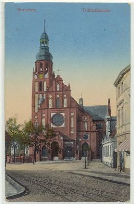 Kościół Świętej Trójcy w Bydgoszczy - kościół położony w Bydgoszczy, którego patronem jest Trójca Święta. PołożenieKościół znajduje się przy ul. Świętej Trójcy na dawnym Przedmieściu Poznańskim, obecnie obrzeżu Starego Miasta w Bydgoszczy. HistoriaObecny kościół Św. Trójcy w Bydgoszczy powstał na fundamentach wcześniejszej gotyckiej świątyni, która istniała ponad 250 lat. Historia kościoła staropolskiegoNa miejscu obecnego kościoła w latach 1550-1829 istniał orientowany, murowany kościół z ozdobnym szczytem zachodnim, otoczony cmentarzem. Został ufundowany przez mieszczan bydgoskich, zamieszkujacych przedmieście Poznańskie. Rozbiórka świątyni nastąpiła na polecenie władz pruskich. Historia kościoła nowożytnegoZa początek nowej historii kościoła pw. św. Trójcy uznaje się wspólne spotkanie katolików polskich i niemieckich, które odbyło się 29 listopada 1895 r. Uznano na nim pilną konieczność budowy nowych kościołów katolickich w mieście, które w II połowie XIX wieku znacznie zwiększyło liczbę mieszkańców, w tym katolików. Orędownikiem tej inicjatywy był proboszcz parafii farnej ks. dr Józef Choraszewski (1834-1899). Nabył on z własnych funduszy dwie parcele na dzisiejszej ul. Seminaryjnej z myślą o przeznaczeniu ich pod nowy kościół oraz zamówił projekt u bydgoskiego budowniczego Józefa Święcickiego. Koncepcja przedstawiała budowlę trójnawową, czteroprzęsłową, z wieloboczną apsydą i transeptem, zwieńczonym kopułą. Z neorenesansowym charakterem elewacji frontowej kontrastowały gwiaździste sklepienia przykrywające poszczególne nawy. W 1902 r. kolejną koncepcję świątyni wykonał urzędnik rejencyjny Roman Ziemski, a w roku 1903 r. proboszcz parafii farnej Ryszard Markwart zlecił projekt architektowi Rogerowi Sławskiemu. Koncepcja świątyni w barokowej stylistyce została przedłożona przez niego w sierpniu 1903 r. Była ona twórczym rozwinięciem pracy Ziemskiego z zachowaniem ustalonych wcześniej parametrów budowli: 37 m długości, 21 m szerokości, 1,2 tys. pojemności wiernych. Kościół posiadał układ bazylikowy czteroprzęsłowy, z wieżą wyrastająca z dachu. Neobarokową fasadę wieńczył tympanon z płaskorzeźbą Chrystusa na krzyżu w aureoli promieni glorii. Całość ujęta była w pilastry oraz zaakcentowana obeliskami. Po uzyskaniu zgody na budowę u władz kościelnych i ustaleniu lokalizacji świątyni na dawnym cmentarzu Świętej Trójcy, podjęto trudne pertraktacje z władzami pruskimi, niechętnymi dla polskich katolików. W 1904 r. w Bydgoszczy odbyła się konferencja z udziałem wyższych urzędników Ministerstwa Kultury z Berlina, podczas której zaakceptowano potrzebę budowy kościoła dla polskich katolików, lecz jednocześnie uzależniono pozwolenie na budowę od zgody arcybiskupa poznańsko-gnieźnieńskiego na utworzenie odrębnej, filialnej parafii niemiecko-katolickiej w Bydgoszczy. Proboszcz parafii farnej ks. Ryszard Markwart odebrał tę decyzję jako polityczną, której celem było ekonomiczne osłabienie kościoła katolickiego. Władzom pruskim zależało na utrzymywaniu rozłamu między polską i niemiecką częścią parafii i uniezależnieniu jej od wpływu polskiego proboszcza. Patowa sytuacja zakończyła się ostatecznie ugodą zawartą 13 lutego 1906 r. między arcybiskupem Edwardem Likowskim, a Pruskim Ministerstwem Kultury. Przewidywała ona budowę w Bydgoszczy dwóch sukursalnych kościołów katolickich - jednego dla Niemców (fundowanego przez władze państwowe), a drugiego dla Polaków (fundowanego ze składek społecznych). W momencie rozpoczęcia procedur administracyjnych tajemniczą sprawą było zaginięcie gotowego projektu świątyni, prawdopodobnie w Ordynariacie w Poznaniu. W tej sytuacji arch. Roger Sławski wykonał nowy, okazalszy projekt, zgodnie z oczekiwaniami społeczności polskiej, obawiającej się niekorzystnego kontrastu z planowanym kościołem niemieckim. Tym razem świątynia miała pomieścić 3 tys. wiernych i nie odbiegać bogactwem architektonicznym od kościoła Najświętszego Serca Pana Jezusa wznoszonego dla społeczności niemieckiej przez rząd pruski. Pierwsze szkice nowego kościoła powstały w październiku 1907 r., zaś cały projekt w 1908 r. 9 grudnia 1909 r. wydano pozwolenie na budowę. 5 lipca 1910 r. miała miejsce uroczystość położenia kamienia węgielnego. Podczas wykopów natrafiono na szczątki ludzkie z dawnego cmentarza. Stan surowy osiągnięto jesienią 1911 r. Pracami kierował wyznaczony przez Sławskiego architekt Ludwig Jurkiewicz. Budowę świątyni ukończono jesienią 1912 r., a konsekrowano 18 maja 1913 r. przez sufragana gnieźnieńskiego Wilhelma Kloske. Fundusze na budowę pochodziły ze składek społeczności polskiej w Bydgoszczy i okolicy (113 tys. marek plus pożyczka bankowa 80 tys.) oraz od kurii gnieźnieńskiej (80 tys. marek) i papieża Piusa X (8 tys. marek). Zasługuje na uwagę, że w kościele tym odprawiano nabożeństwa wyłącznie w języku polskim i jest to jedyna polska świątynia katolicka, której władze niemieckie pozwoliły powstać w Bydgoszczy w okresie zaborów. Kościół został wybudowany wraz z zespołem zabudowań parafialnych w stylu neobarokowym. Prace wykończeniowe wnętrz prowadził w latach 20. XX w.Adam Ballenstaedt z Poznania. Rzeźby do ołtarzy wykonał Władysław Marcinkowski z Poznania, a witraże Wiktor Gosiecki z Gniezna. W kaplicy pw. Matki Boskiej Częstochowskiej umieszczono obraz maryjny przeniesiony z pierwotnego kościoła. Kościół początkowo pełnił funkcję filii bydgoskiej fary. W 1924 r. erygowano parafię dekretem ks. kard. Edmunda Dalbora. W okresie międzywojennym ostatecznie ukończono wystrój świątyni, zamontowano organy, wykonano polichromie oraz urządzono cmentarz parafialny na dzisiejszym osiedlu Błonie. W latach 1972-1995 w świątyni wykonano szereg modernizacji i