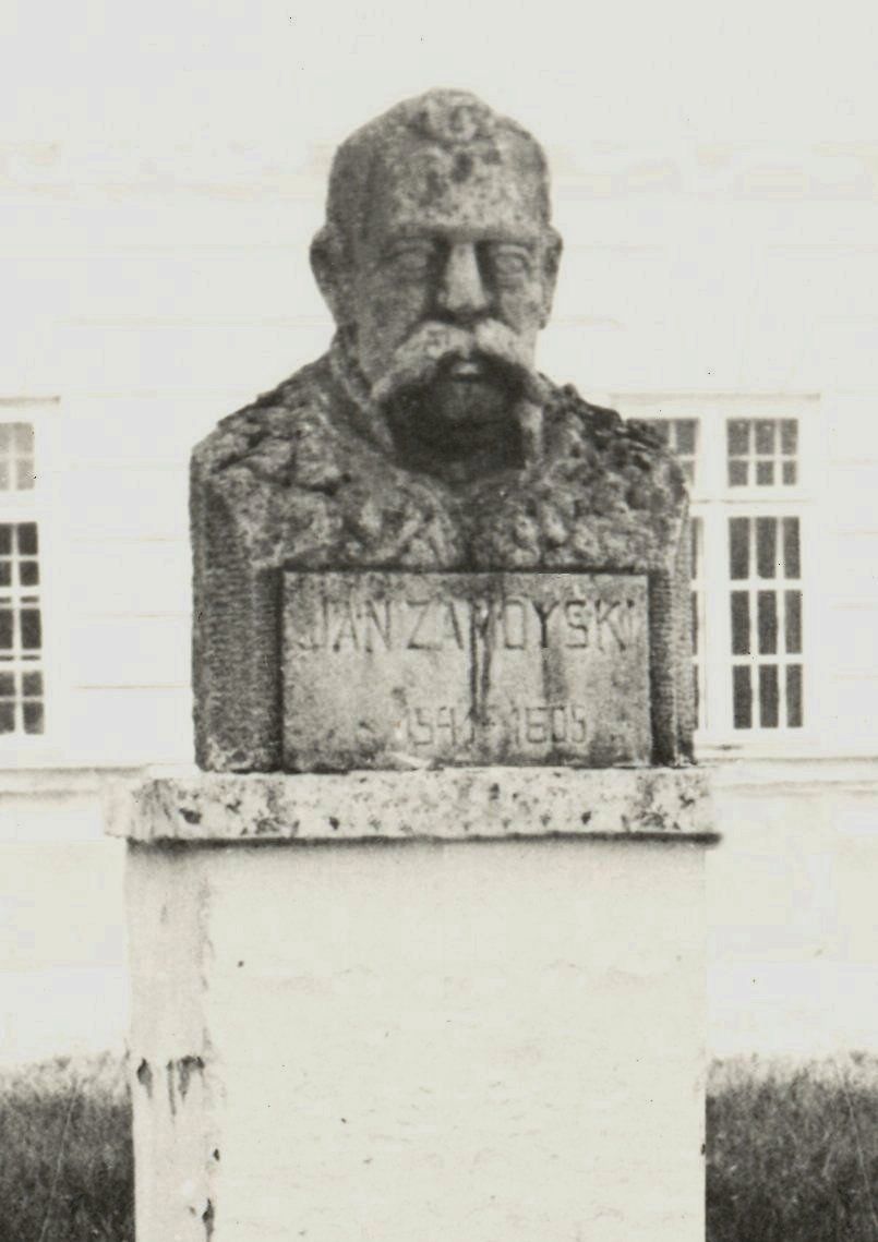 Pałac Zamoyskich w Zamościu – dawna rezydencja rodziny Zamoyskich w zachodniej części Starego Miasta (ul. Akademicka) w Zamościu. Dawny pałac założyciela miasta, Jana Zamoyskiego przechodził wiele etapów przebudowy, przez co obecnie nie jest już tak okazałą budowlą jak dawniej. Pałac renesansowyBył to pierwszy obiekt, jaki zaczęto budować po założeniu miasta. Pierwsza budowa trwała w latach 1579 – 1586, a projekt pałacu wykonał Bernardo Morando. Wówczas pałac posiadał odrębne mury oddzielające go od pozostałej części miasta, miał formę prostokąta o długości ok. 60 m, dwie kondygnacje, wieżę z tarasem oraz dwuskrzydłowe schody od strony Rynku Wielkiego. Po jego północnej stronie znajdowała się też pierwsza forma zamojskiego arsenału, nieco bardziej przesuniętego na wschód. Nieco później dobudowano za nim, po stronie zachodniej, niewielkie oficyny. Pałac barokowyW roku 1658 pałac spłonął, dlatego po 1660 w stylu już barokowym odbudował go III ordynat zamojski Jan zwany Sobiepanem. Niedługo później odbyła się w pałacu polska prapremiera "Cyda" Corneille`a w tłumaczeniu Andrzeja Morsztyna. W latach 1689-1690 Sobiepan polecił rozbudowę rezydencji, którą wykonał Jan Michał Link. Pałac późnobarokowyW latach 1747-1751 nastąpiła większa późnobarokowa przebudowa pałacu dokonana na polecenie Tomasza Antoniego Zamoyskiego. Przeprowadzili ją Jan Andrzej Bem i Jerzy de Kawe. Podczas niej m.in. obniżono wieżę, usunięto attykę i pozbawiono pałac dekoracji. Pałac został połączony z tylnymi oficynami, a od strony frontowej dobudowano po bokach dwie dłuższe oficyny, prostopadle położone do jego głównej części, zakończone niewielkimi piętrowymi budynkami, pomiędzy którymi biegły mury z wyniosłą bramą z żelaznymi kratami, tworząc w ten sposób okazały dziedziniec pałacu. Główny gmach wieńczył wysoki barokowy dach mansardowy. Pałac klasycystycznyPo 1803 roku, za sprawą XII ordynata Stanisława Kostki Zamoyskiego, styl pałacu zmieniono w klasycystyczny. Zachował się dziedziniec, na którym w II poł. XIX wieku urządzony został ogród, który dostępny był głównie dla żołnierzy, w okresie międzywojennym przekształcony został w park. W oficynie prawej (tej od strony północnej) w czasach II RP znajdowała się drukarnia. Po 1945 roku była to jedyna niezniszczona drukarnia na ziemiach polskich po prawej stronie Wisły. Drukowano tu pierwsze dzienniki urzędowe, książki, plakaty i ogłoszenia. Współcześnie, od roku 1918, mieszczą się tu sądy (okręgowy i rejonowy), natomiast w budynkach dobudowanych od tyłu (zachodnia strona), wokół podwórza, znajdują się mieszkania komunalne. Planowana jest renowacja tego ważnego dla miasta budynku. PomnikObecnie przed dawnym pałacem Zamoyskich urządzono skwer z nielicznymi drzewami, na którym od 2005 roku, bliżej ulicy Akademickiej, wznosi się pomnik Jana Zamoyskiego, dosiadającego konia i trzymającego w prawej ręce buławę. Wcześniej, przed pałacem znajdowało się niewielkie, kamienne popiersie tego hetmana, wykonane przed wojną przez Jakuba Juszczyka. Pierwotnie stało na terenie dawnego ZOO, a w latach 80. ustawiono je pod dawnym pałacem. Przed 1939 rokiem Zamoyscy planowali wystawienie pod pałacem Janowi Zamoyskiemu okazałego pomnika. Miała go wykonać Maria Rychterowa (rzeźbiarka z Warszawy, prawdopodobnie zginęła w ramach akcji AB wraz z ojcem profesorem lwowskim), ale wojna te plany przekreśliła. |