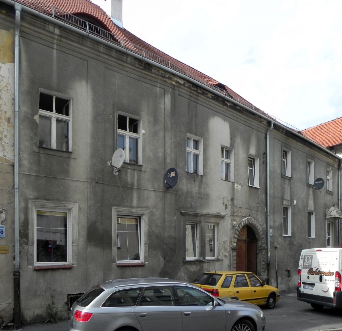 Kamienica przy ul. Czeskiej 38 w Kłodzku – renesansowa kamienica pochodząca z XVII wieku. HistoriaBudynek został wzniesiony w XVII wieku, później był wielokrotnie przerabiany, także we wnętrzach. Umiejscowienie budynku w pobliżu bramy Czeskiej, jego rozmiary i liczne przeróbki wnętrz każą się domyślać, że był to niegdyś zajazd. Zarządzeniem z dnia 3 grudnia 1984 roku kamienica została wpisana do rejestru zabytków Narodowego Instytutu Dziedzictwa ArchitekturaDom jest duży, o szerokości frontu około 22 metrów, powstały z dwóch sąsiadujących ze sobą, mniejszych budynków, rozmieszczony na nieco chaotycznym planie. Elewacja jest dwukondygnacyjna, o nieregularnym rozmieszczeniu okien. Z pierwotnej architektury renesansowej zachowały się bliźniacze okna w parterze obok bramy. Portal bramy przejazdowej z XVII wieku, o wąskich węgarach i wąskiej archiwolcie, jest boniowany. W kluczu widnieje tarczka z dwiema gwiazdkami, między którymi był niegdyś monogram lub godło, obecnie nieczytelne. U dołu prócz prostych odbojników wystają dwa siedziska o pobocznicy muszlowej. |